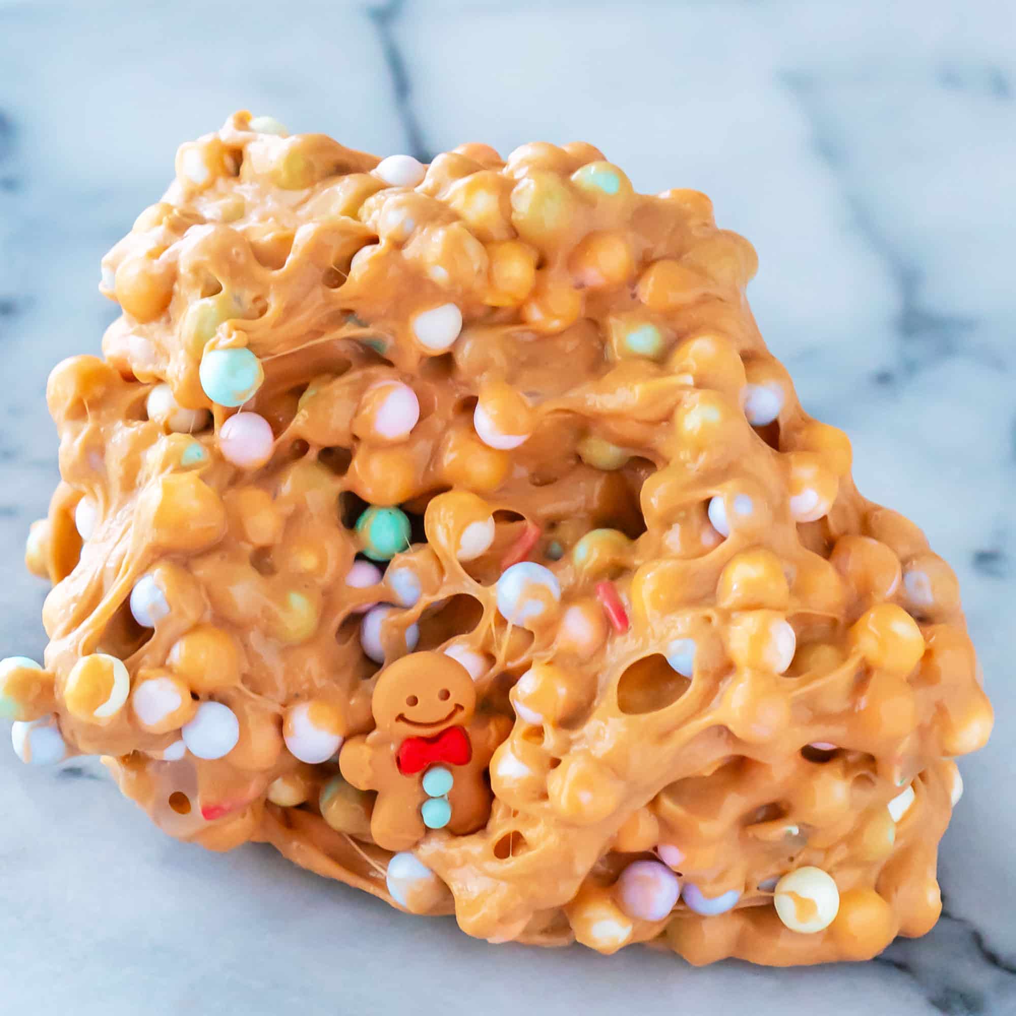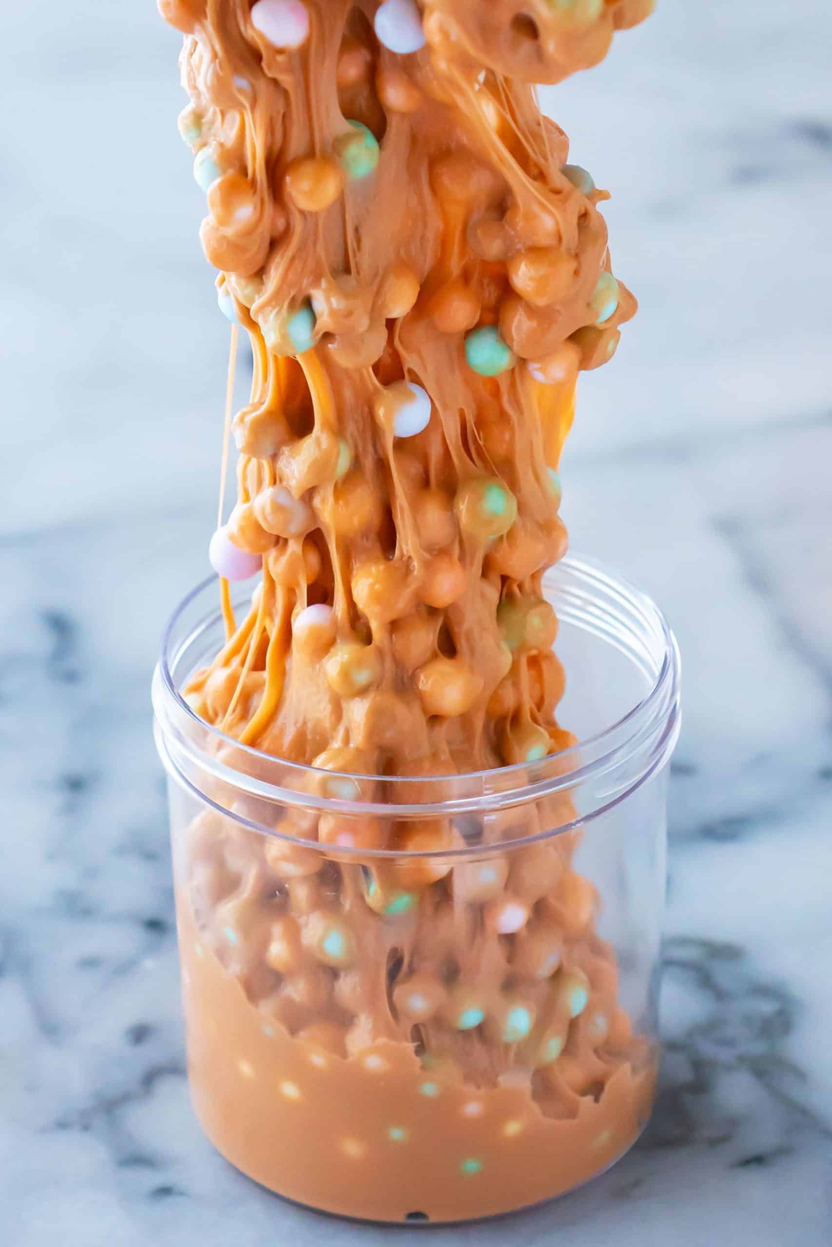 Enjoy the delicious scent of gingerbread cookies whenever you want with our cute gingerbread floam slime. The Gingerbread Cookie Crunch slime is a light brown glossy slime packed with large, multicolor, pastel foam beads. The foam balls give this holiday slime a crunchy texture, and allow air bubbles to form during slime play which means lots of great bubble pops.