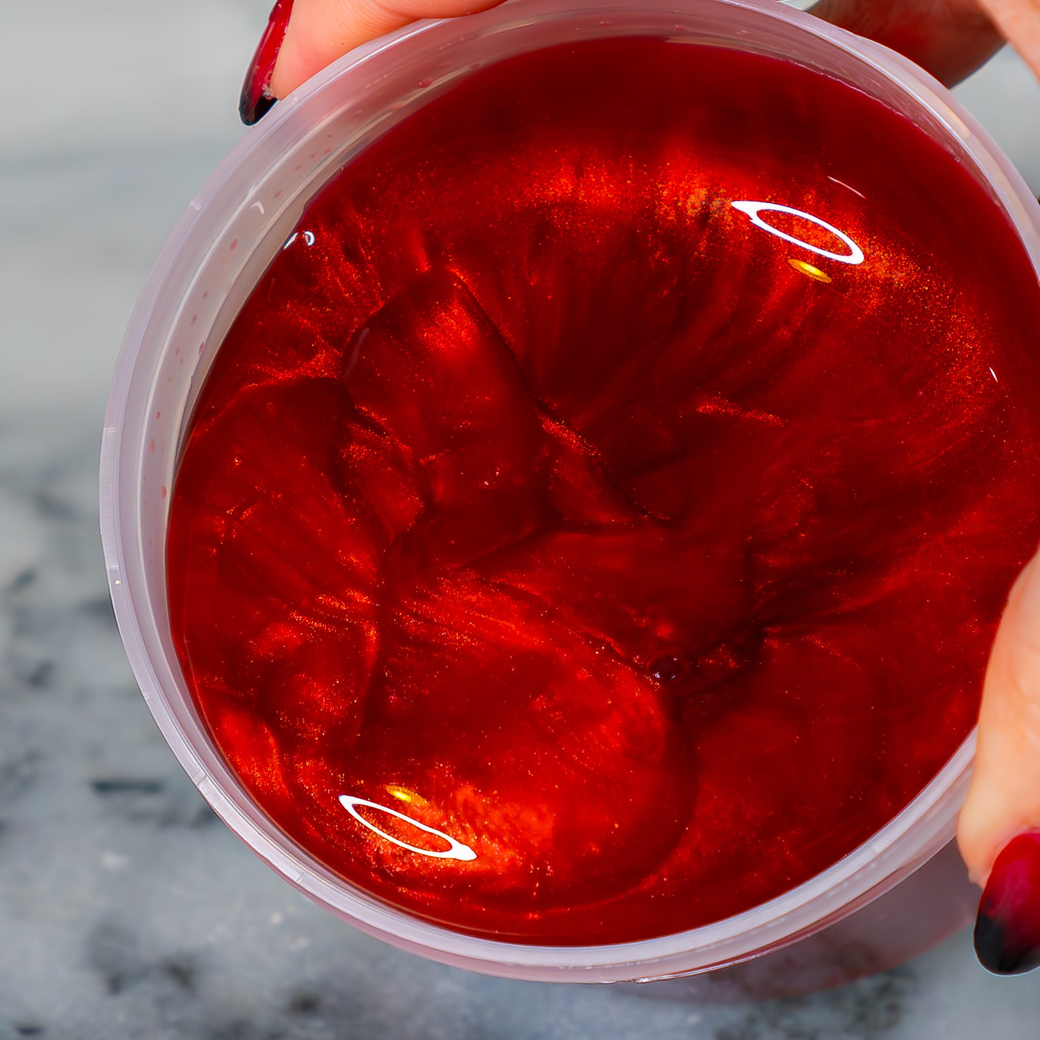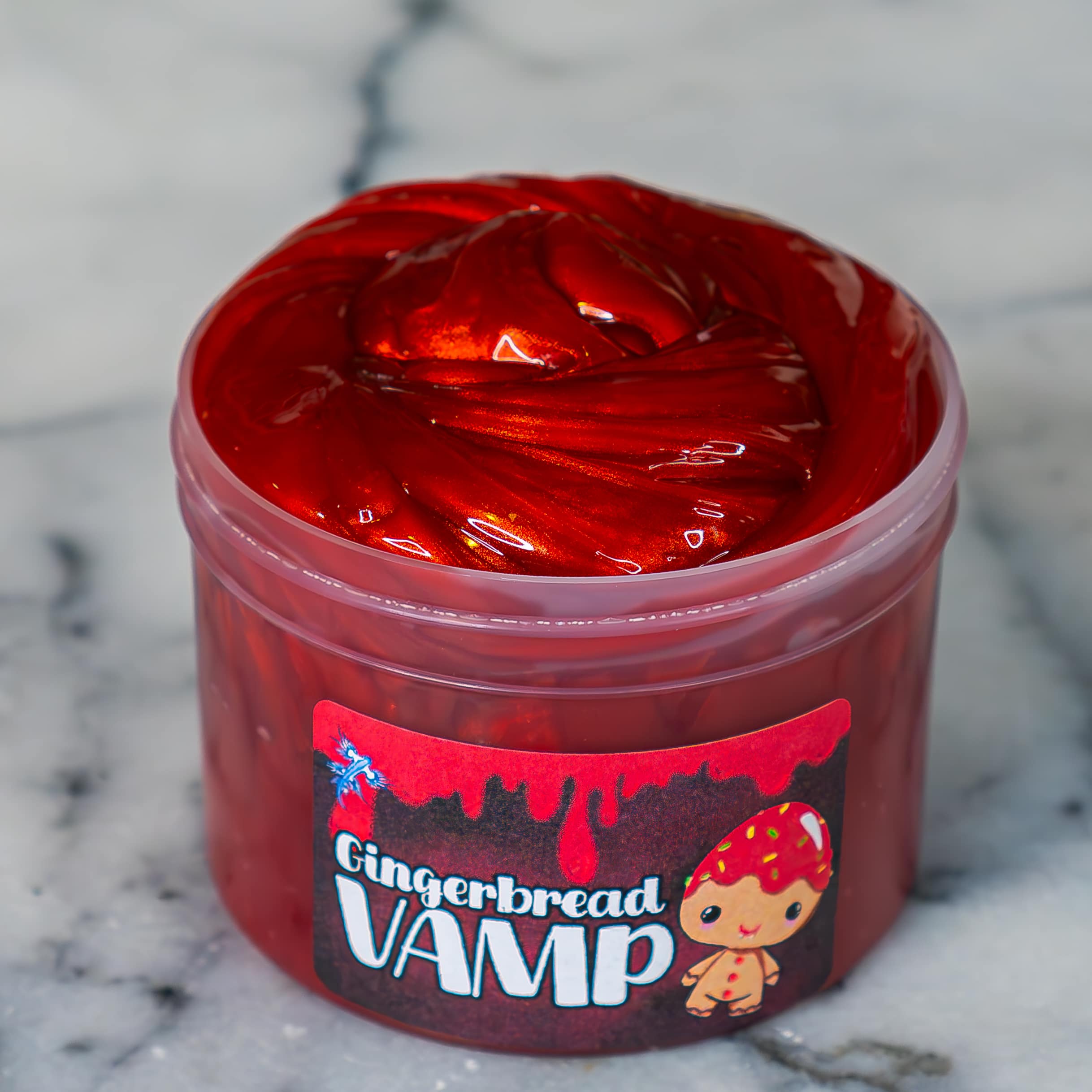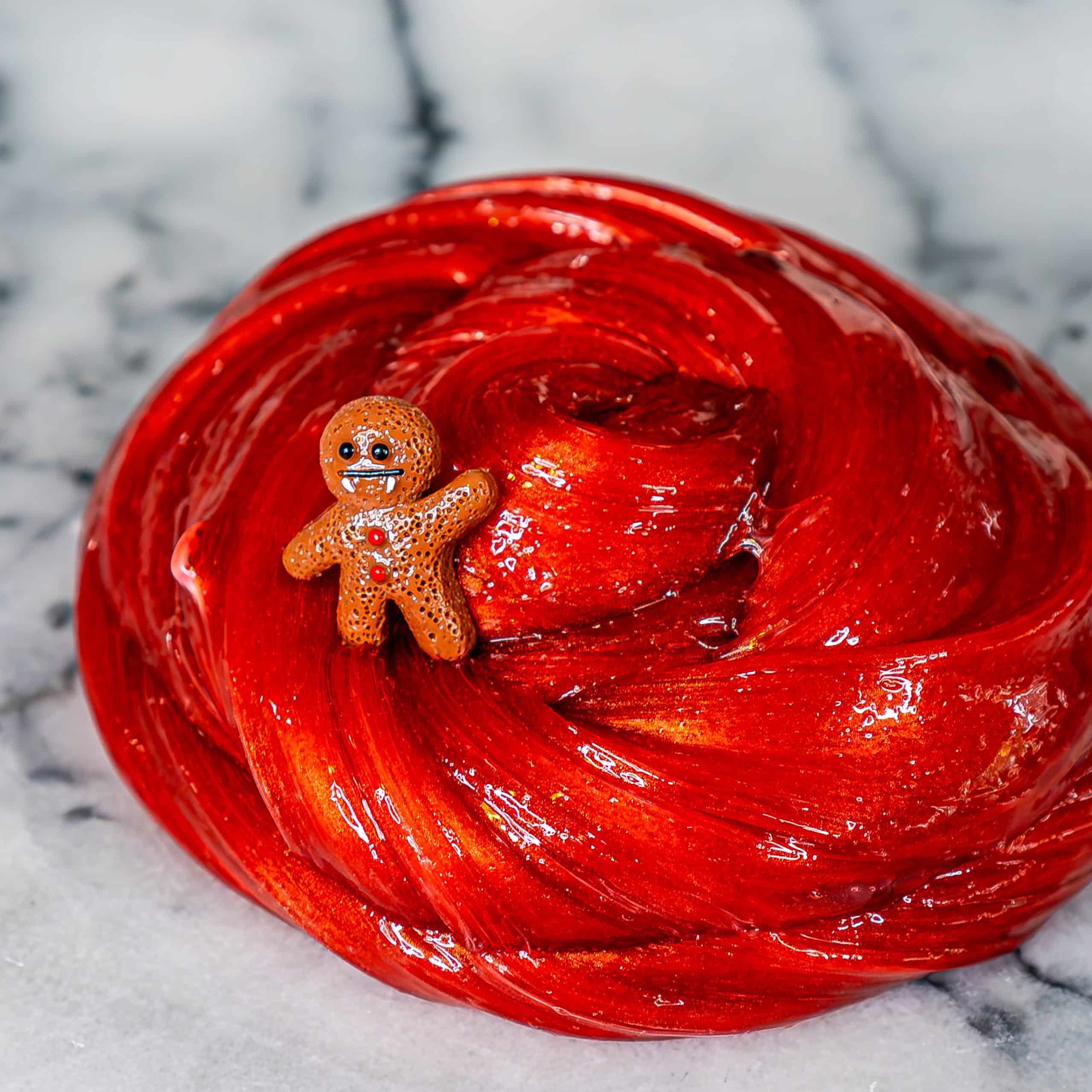 It’s a deep red, shimmery slime scented just like fresh-baked gingerbread cookies, bringing the nostalgia of a Christmas Halloween mashup. The vampire gingerbread man charm and playfully themed sprinkles make it perfect for the holiday season or whenever you’re in the mood for some wickedly delightful slime play!