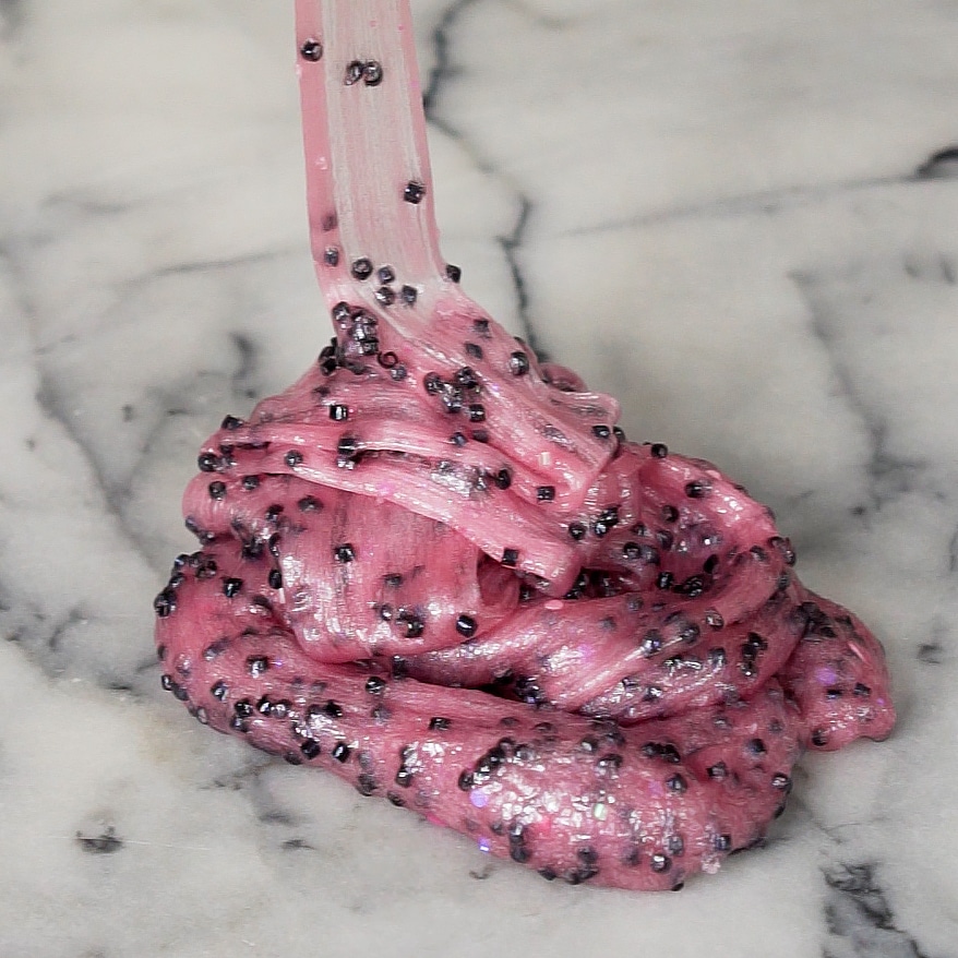 We categorize our clear slimes as “advanced” because they are more likely to get sticky in transit, or based on weather and time. Clear glue slimes also need to be touched and released faster than other textures, so may be stressful for slime newbies.