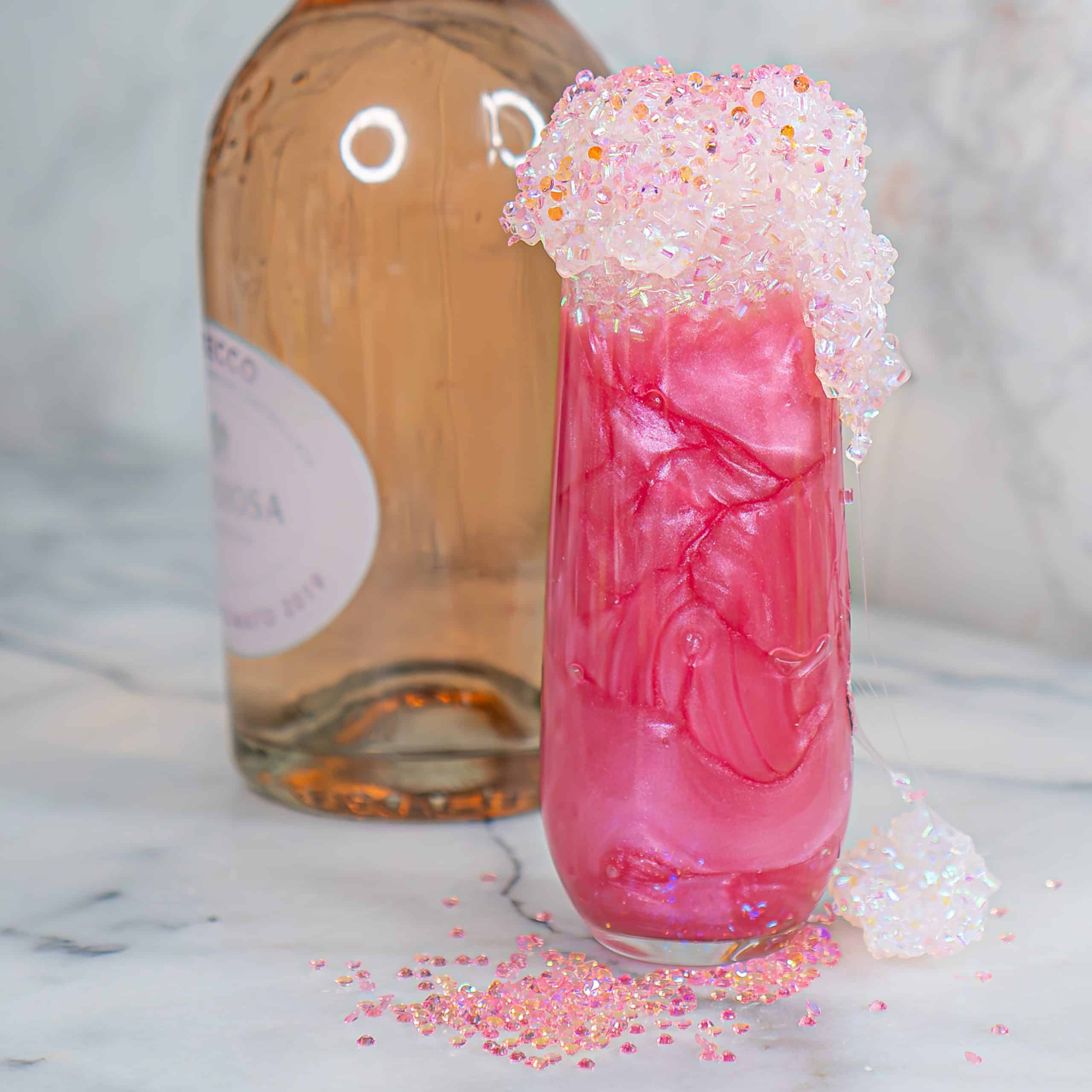 Pink Champagne Diamonds Slime is a clear slime topped with a clear snow fizz slime. This slime combo smells like a tangy pink champagne cocktail and actually looks like pink champagne. See it in the photo gallery!
